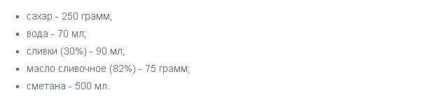 Берется только жирная сметана (не менее 30%), иначе вы не получите необходимую густую консистенцию.