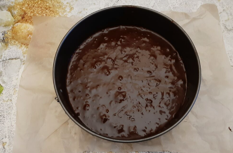 В подготовленную форму для выпечки постелить пергаментную бумагу, выложить тесто и поставить в духовой шкаф, нагретый до t 180 градусов, на время — 30 минут.
