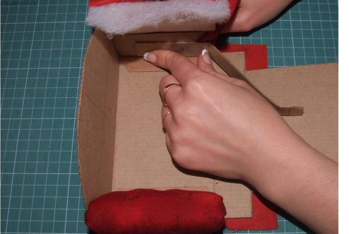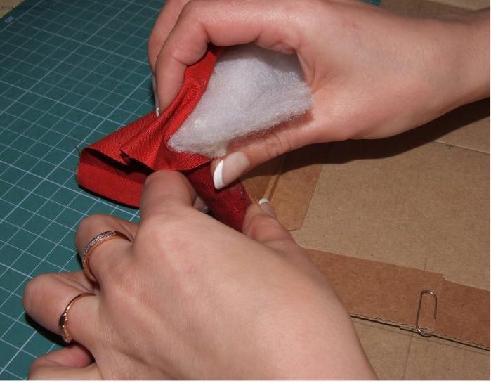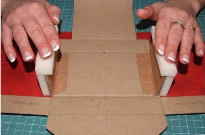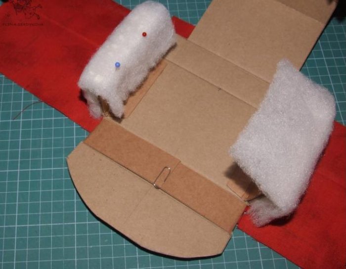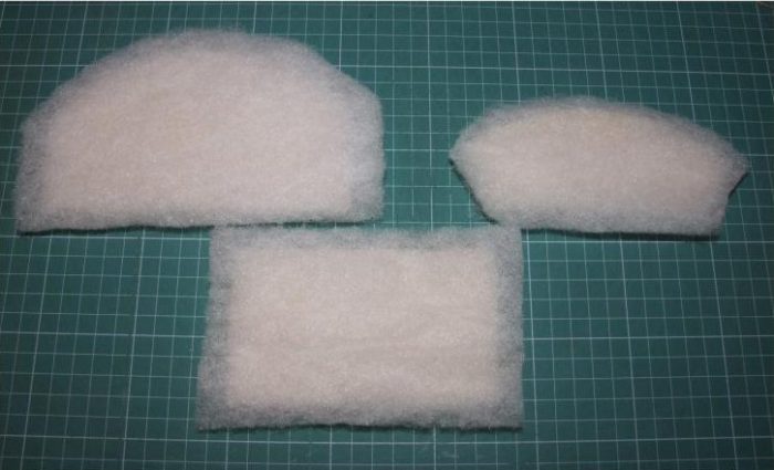 Под картонные заготовки подрезаем соответствующие детали из поролона и синтепона.