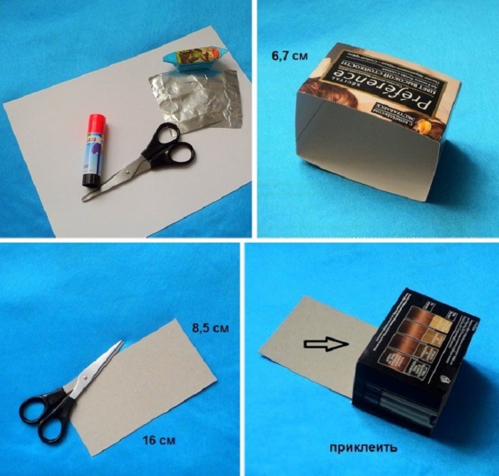 - Небольшая картонная коробочка (например, из под краски для волос);
