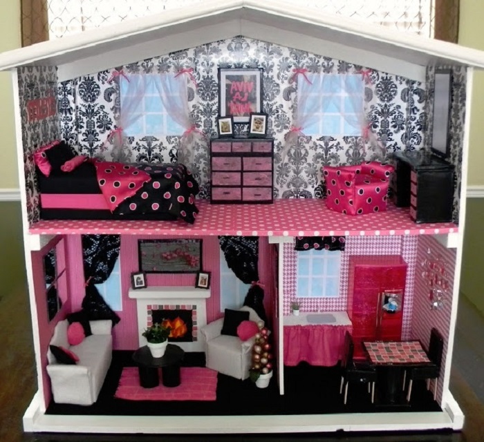 Самый бюджетный и легкий в изготовлении вариант — бумажная кукольная мебель. В интернете можно найти множество шаблонов для такой обстановки, а также схем и фонов для скрапбукинга. Остается только распечатать и собрать.
