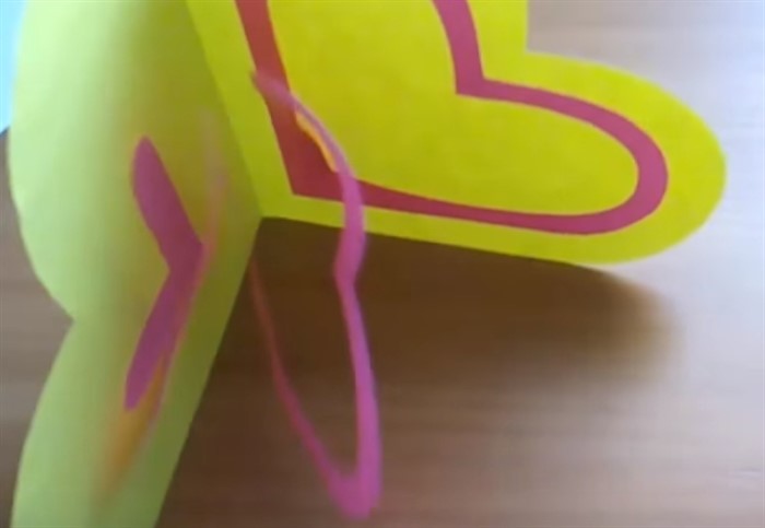 - Шаблон с сердечком сложите пополам, наведите контуры сердечка поменьше. Вырежьте.