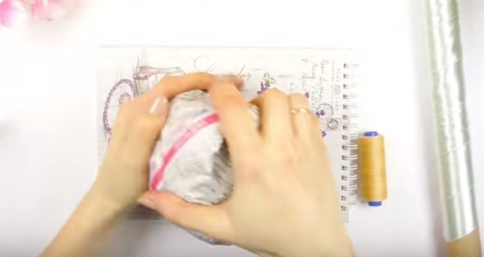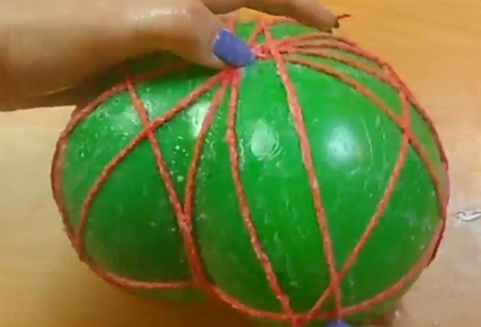 5. Чтобы шар не распадался и был более круглой формы, тщательно перемотайте его нитками.