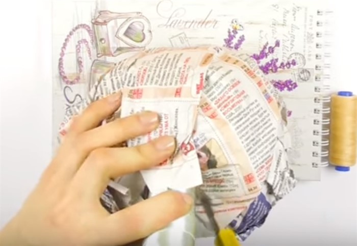 2. Небольшой кусок сомните в форме кома, затем продолжайте добавлять к кому бумагу, придавая ему форму шара.