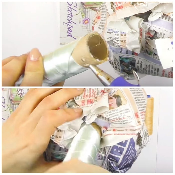1. Трубку бумажную обмотайте лентой, местами прихватывая клеем.