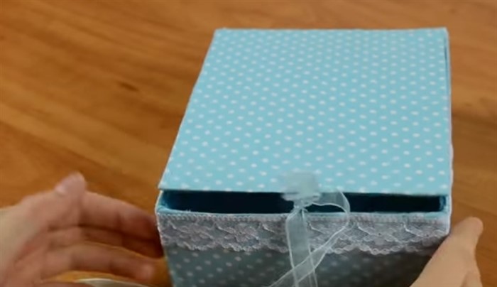 - Кружевом обклейте коробку по периметру.