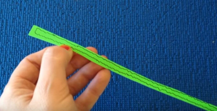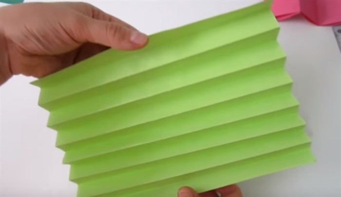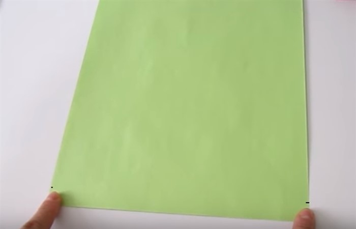 - Лист офисной бумаги зеленого цвета расположите горизонтально.