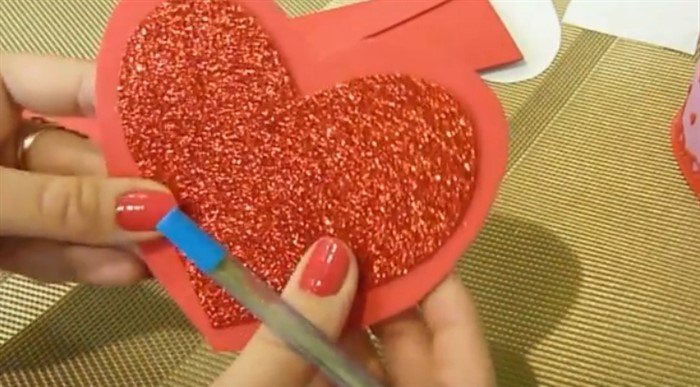 6. На одну из сторон приклейте глиттерное сердце.