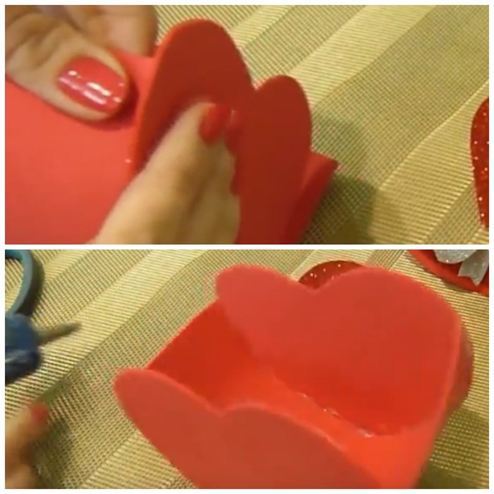 - Фетром или картоном обклейте внутреннюю часть коробки.
