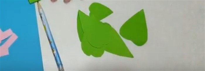 4. Из зеленой бумаги вырежьте листики в виде сердечек разного размера.