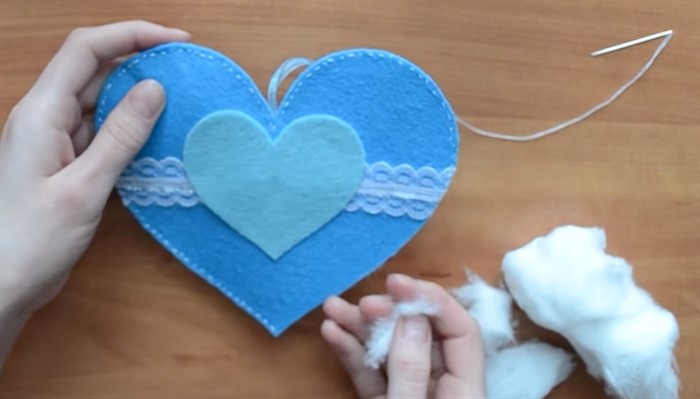 Через отверстие заполните сердце ватой или синтепоном. Отверстие зашейте.