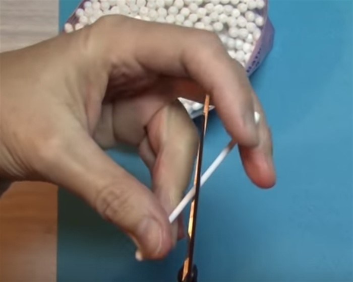 - Ватные палочки разрежьте пополам наискось.