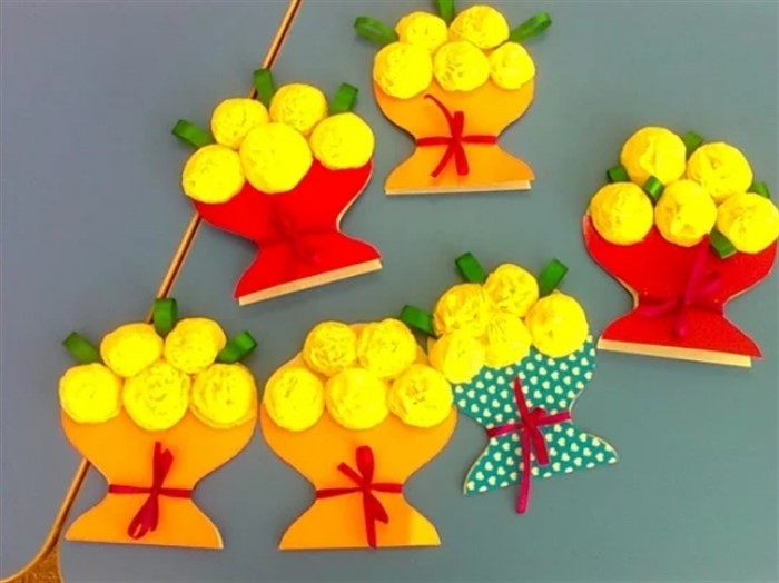 - Поделка в сад букет для мамы, пошагово с фото