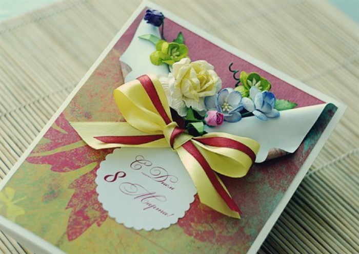 - Приклейте к лицевой части открытки.