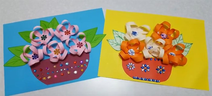 На не приклеенные части полосок приклейте цветы.