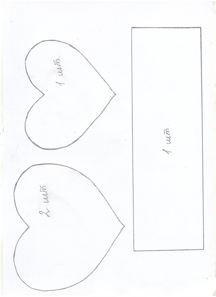 2. К фоамирану 2 мм толщиной приложите сердце большего размера, ручкой наведите конуры, вырежьте. Потребуется 2 таких сердца. Из этого же фоамирана вырежьте широкую полоску.