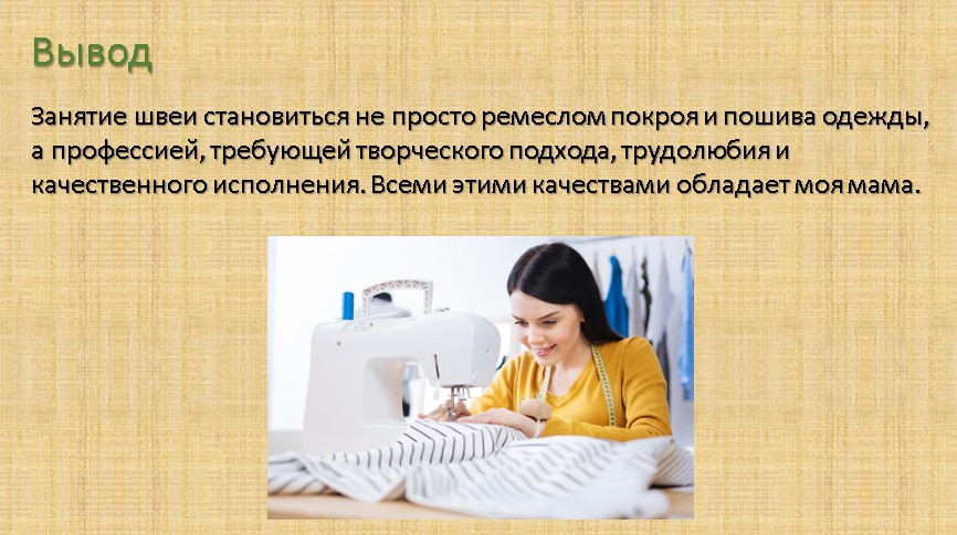 6. Вывод — написать свое мнение, которое сложилось о профессии мамы в результате работы над проектом.
