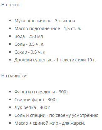 Для приготовления слоеных чебуреков вам надо взять вот что: