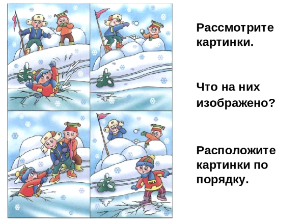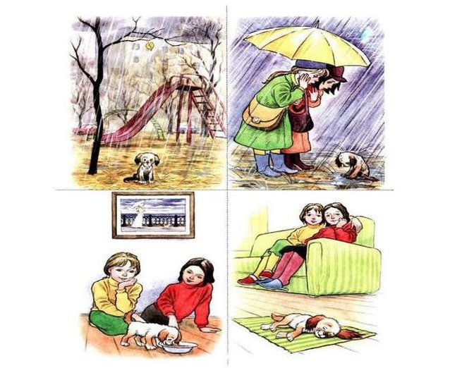 Картинки нужно расставить, соблюдая правильную последовательность и придумать рассказ.