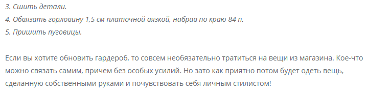 При выборе стоит учитывать опыт в рукоделии: если вы только начинаете вязать, то выбирайте модели, которые просты в исполнении, т.е. имеющие незамысловатый узор и крой.