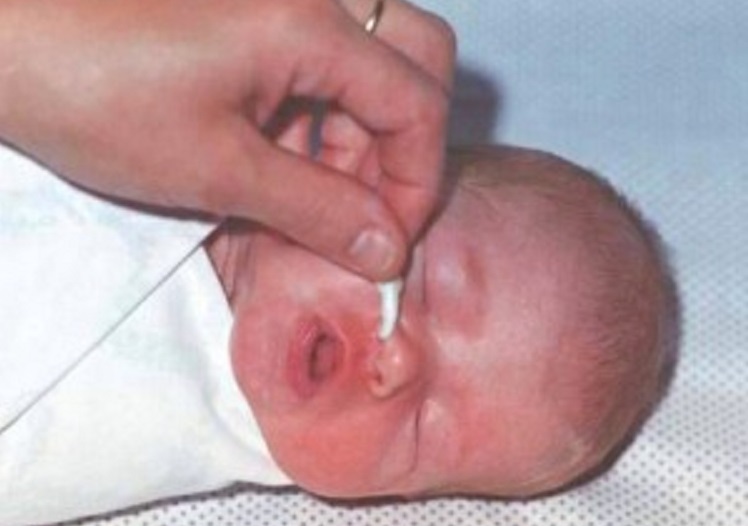 Процедура очищения носика от соплей проводится очень аккуратно, дабы не повредить носовой проход и слизистую.