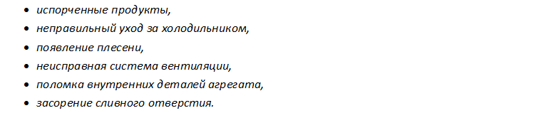Неприятные ароматы в холодильной камере могут появиться по нескольким причинам: