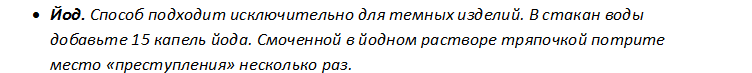 Соедините в емкости с распылителем 10 частей водки/1 часть аммиака, взболтайте, обработайте место. Время взаимодействия не менее 30 минут. После чего пятно просушить.