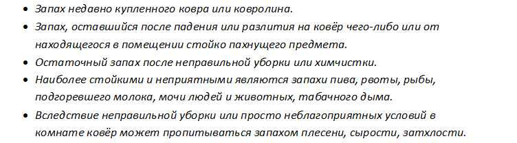 Зловонному запаху ковра может быть несколько причин: