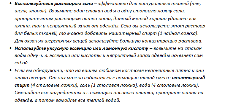 Они устраняют не только сам запах, но и выводят въевшиеся потные пятна: