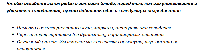 Рыбные запахи достаточно едкие, надолго задерживаются. Поэтому ликвидировать их нужно сразу, а лучше всего обезвредить рыбу в начале приготовления: