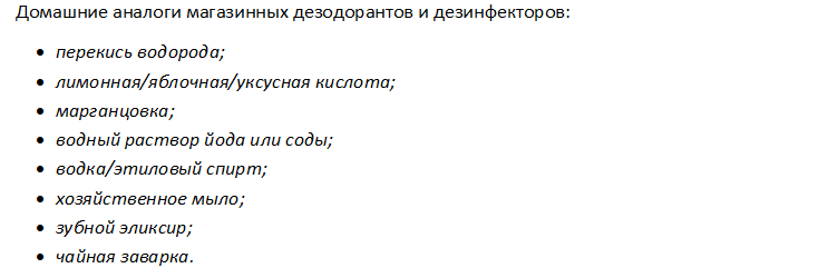 Для удаления запахов пота используют как подручные средства, так и специальные.