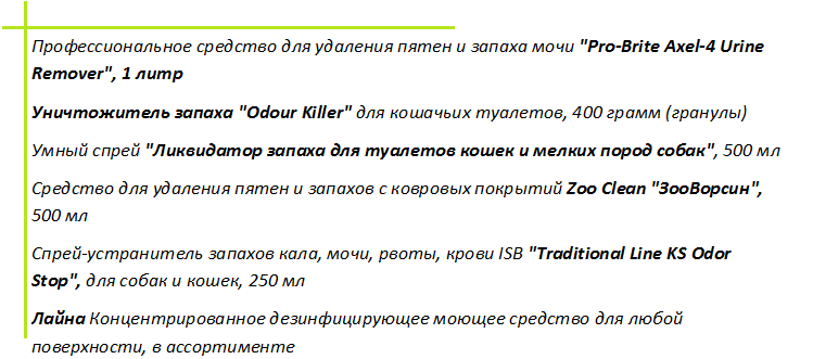Большинство магазинов и интернет площадок предлагают обширный выбор средств для устранения кошачьих запахов: