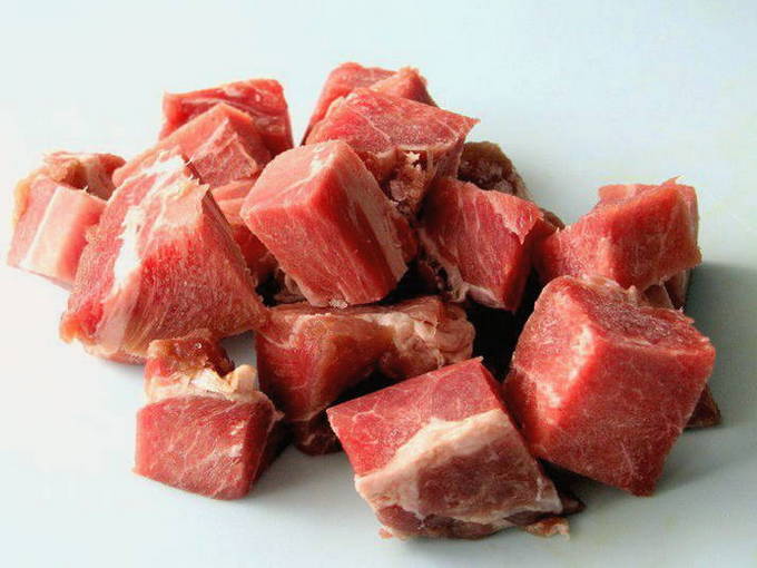 - Прежде чем приступить к приготовлению, у мяса удаляют пленки и жир.