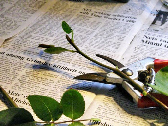 3. Способ «Буритто». Новый способ укоренения пришел к нам из Европы. К мексиканской еде с одноименным названием методика ничего общего не имеет. Разве что, напоминает сам способ заворачивания еды в лепешку. Черенки укутывают во влажную стопку газет и помещают в прохладное место на две недели.
