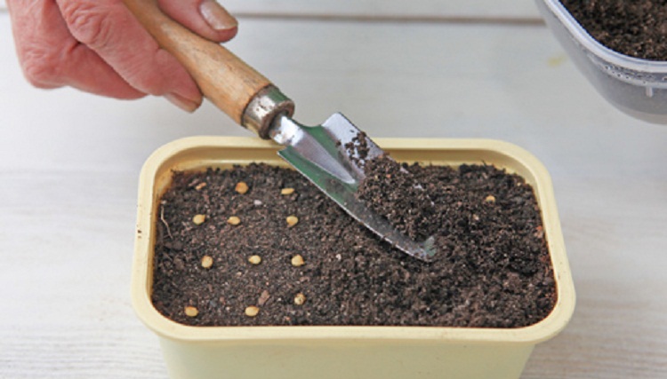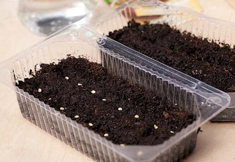 Перед посевом семена охлаждают в холодильнике 1-2 недели. Равномерно раскладывают на поверхность грунта, немного присыпая землей. Обязательно увлажнить пульвером. Прикрывают контейнер пленкой.