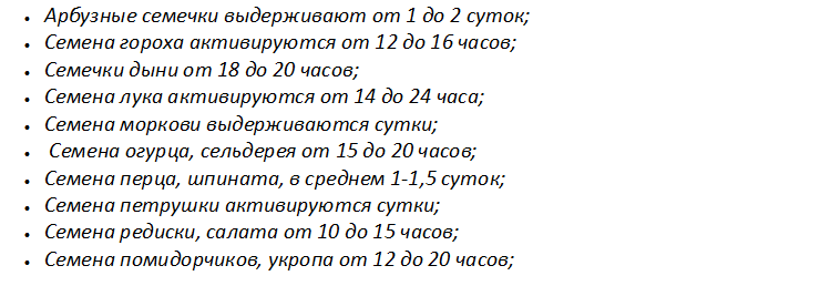 - Семена капусточки и бобовых увлажняют на протяжении 15-20 часов;