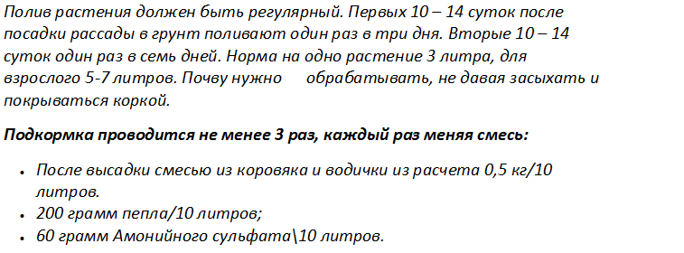 Пересаживают в огород при наличии 6-7 листов, высоте не менее 20 см.