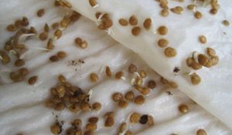 Для того, чтобы семена хорошо взошли их нужно предварительно увлажнить. Для этого используют небольшое количество марлевой ткани, можно обычных лоскутов. Положить их углубленную емкость, полить водичкой немножко, уложить семена. Процедура увлажнения повторяется через 2-3 часа, лучше сбрызгивать поверхность, распылять водичку. Должно быть увлажнение, а не замачивание посевного материала.