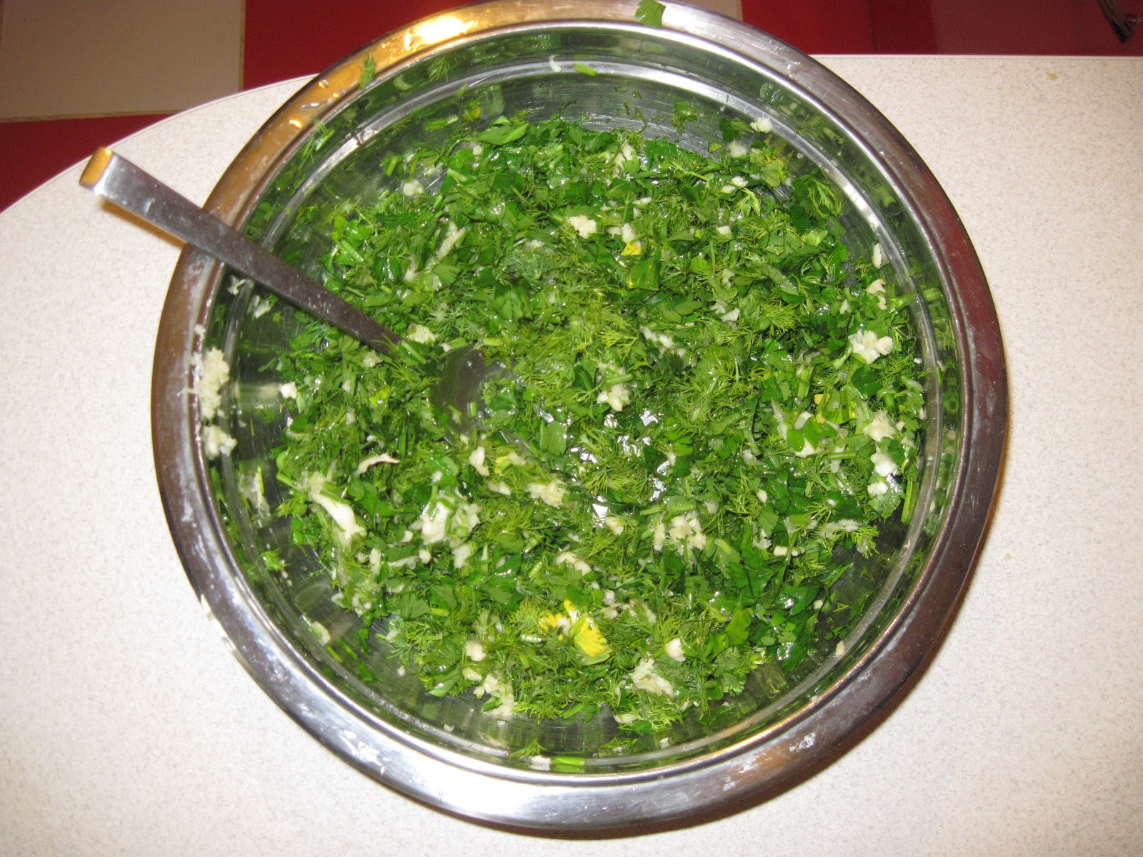 Измельчаем зелень, чеснок и смешиваем этих два ароматных ингредиента между собой. Полученную смесь можно фасовать в пакеты, целлофановую пленку, бутылки, но лучше всего сделать заготовки в пластиковых коробочках. Желательно, чтобы зелени хватало на 2-3 раза, а то и вовсе на 1 порцию. Такая дозировка необходима для исключения посторонних запахов, которые можно получить при вскрытие контейнеров.