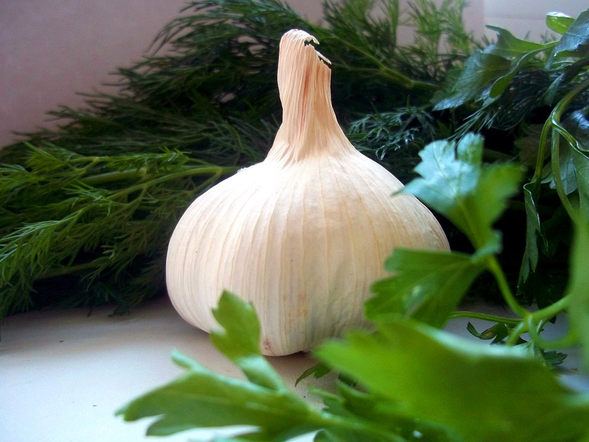 - Сухой чеснок. Самыми вкусными будут листья, которые уже пошли в стрелку. Соберите их после закругления зеленых хвостиков, промойте, а затем высушите в сушилке или в печи. Во время сушки пряную траву нужно периодически переворачивать, так она равномерно просушится. После этого сушеная зелень толчется и раскладывается по хлопковым мешочкам;
