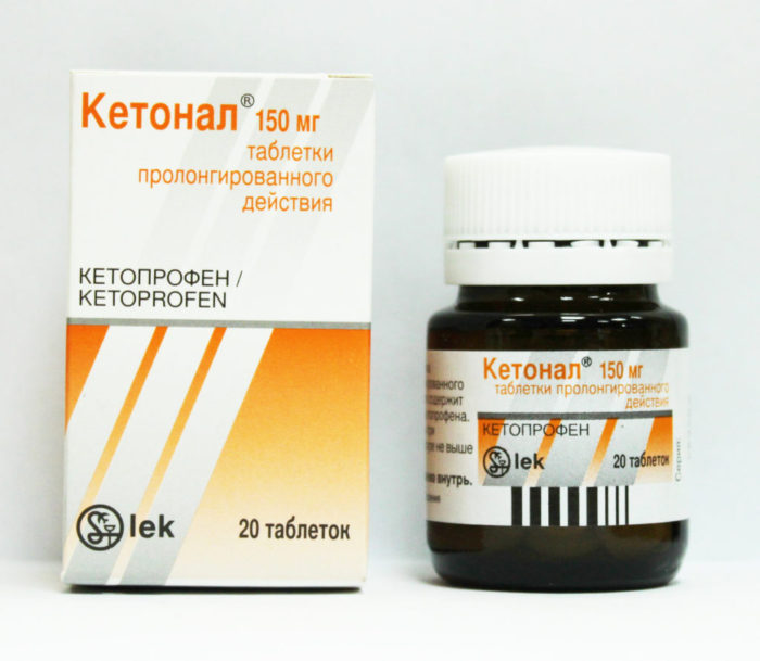 Кетонал — сильное обезболивающее средство, относятся к ряду НПВП с активным компонентом кетопрофен. Симптоматически снимает боли и воспаление разных этиологий. Выпускается в таблетках и капсулах. Рекомендуемые дозы: 0,05 -0,1 г 2-3 раза в сутки после еды. Лекарство рекомендуется принимать с молоком или достаточным количеством воды, чтобы снизить негативные последствия на желудок.