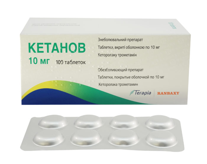 • Кетанов — таблетки с сильным анальгезирующим действием. Кратковременно используется при средних и сильных болях различного генеза. Имеет много противопоказаний, поэтому применяется с осторожностью, особенно у пожилых и людей с «букетом» заболеваний в анамнезе.Таблетки не используют при хронических болях. Кетанов влияет на управление транспортом и механизмами, отпускается по рецепту врача.