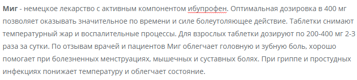 Ибупрофен совмещает три лечебных свойства: снижать температуру, унимать боль и воспаление. Препарат оптимально сочетает эффективное действие и безопасность. Поэтому ВОЗ настоятельно рекомендует использовать Ибупрофен и его комбинации от головной боли в первую очередь.