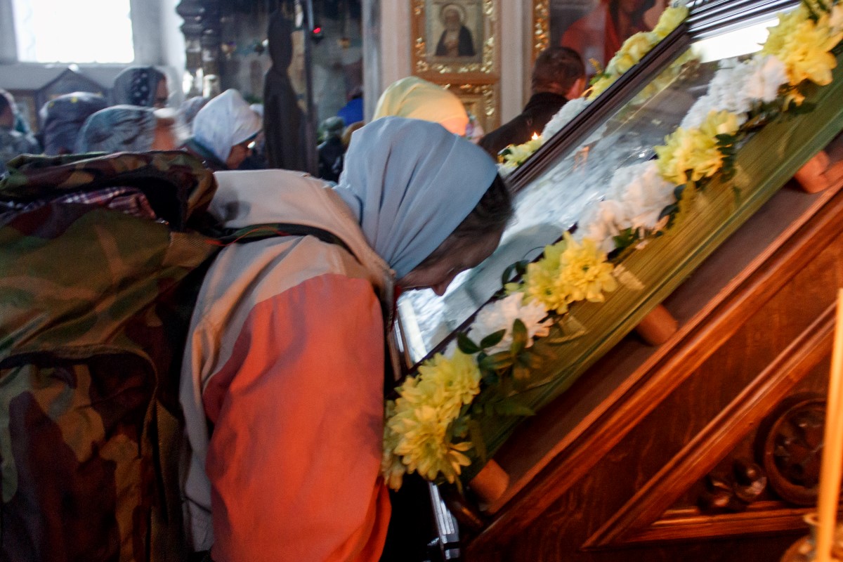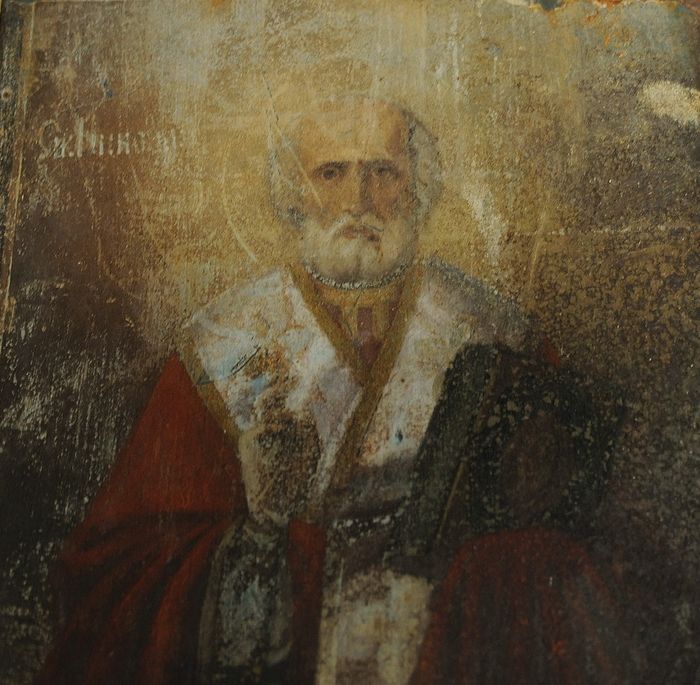 Обнаружила лик Николая Чудотворца на железном листе, староста подворья, которая пришла чистить снег. Она почувствовала, что на нее кто-то смотрит. Таким образом, лик явился людям еще раз.