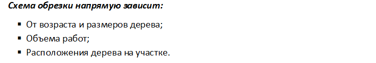Для возрастных деревьев крайняя точка роста должна быть не более 3 метров в высоту, иначе обрезку провести будет не возможно. При непропорциональной закладке первого ряда у взрослого дерева, начало веток придется на двухметровую высоту, что существенно затрудняет уборку. Если нижний каркас будет слабым, от тяжести верхнего он начнет усыхать. Слишком глубокое подрезание новых отростков приведет к сильным зарослям, из-за чего завязь появится только на краях, средина будет пустой.