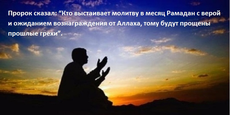 Обязательная молитва «Таравих». Ее читают по завершению ночной молитвы. Читать ее можно как дома, так и в мечети. Она обязательная как для верующего мусульманина, так и для верующей мусульманки.