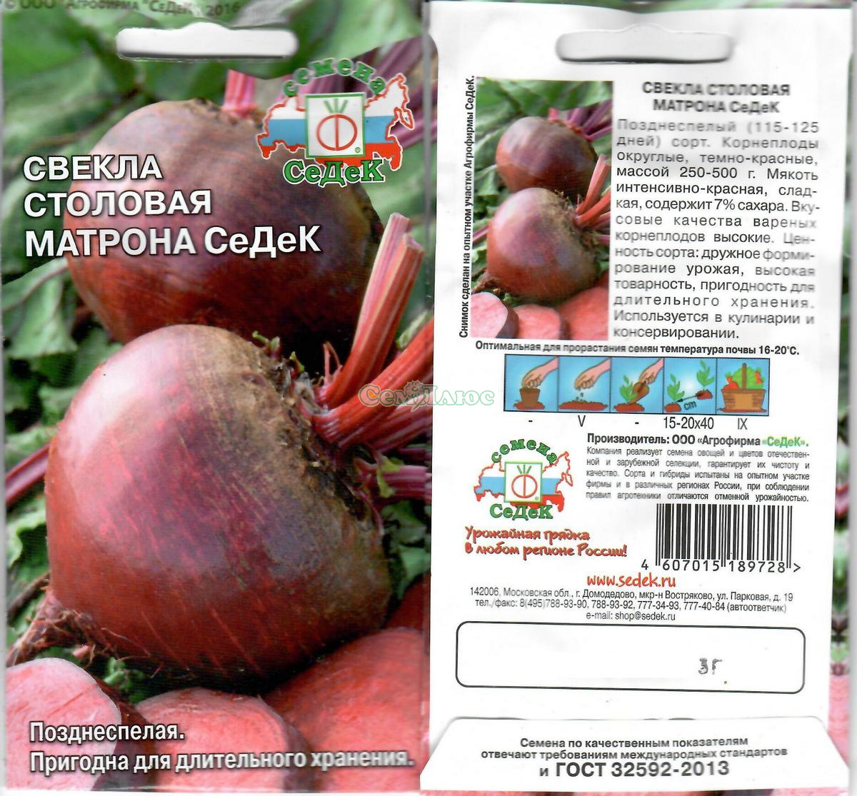 Матрона — позднеспелая. Отличается дружными всходами. Хороша для борща, салатов, консервирования. При правильном хранении, сохраняется до следующего урожая.