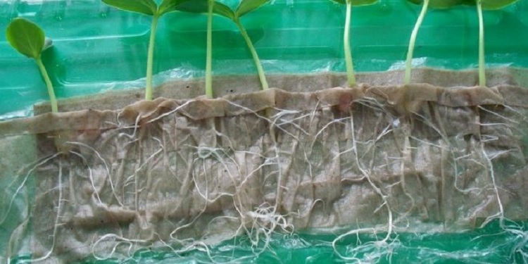 Семена стоят в теплом месте, сквозняки нежелательны. Так же плохо сказывается на всходах и понижение температуры, тормозится проклевывание ростка из семян. После того, как показались первые ростки, емкость с рулоном перемещается на хорошо освещенный подоконник.