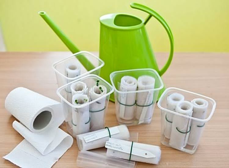 Для высевания вам понадобится пленка, туалетная бумага либо кухонные полотенца, распылитель с водой. Это очень удобно, ведь почву не нужно пропаривать, прожаривать, покупать дополнительные средства для дезинфекции.