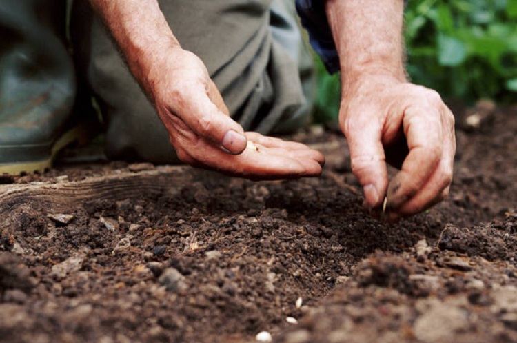 посев семян в грядки